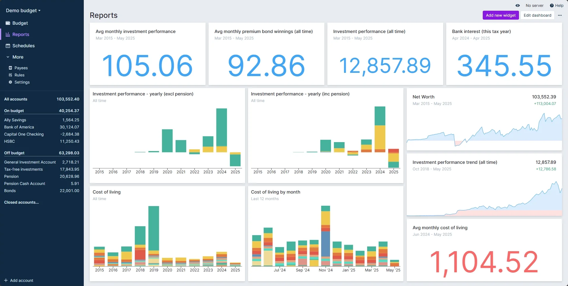 Add all of your accounts and track everything in one place. Get valuable information like net worth from all your accounts together. Learn more